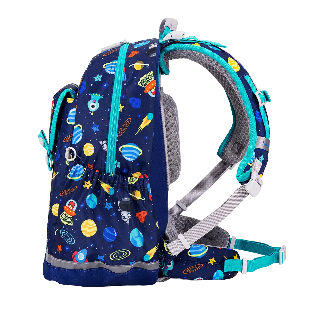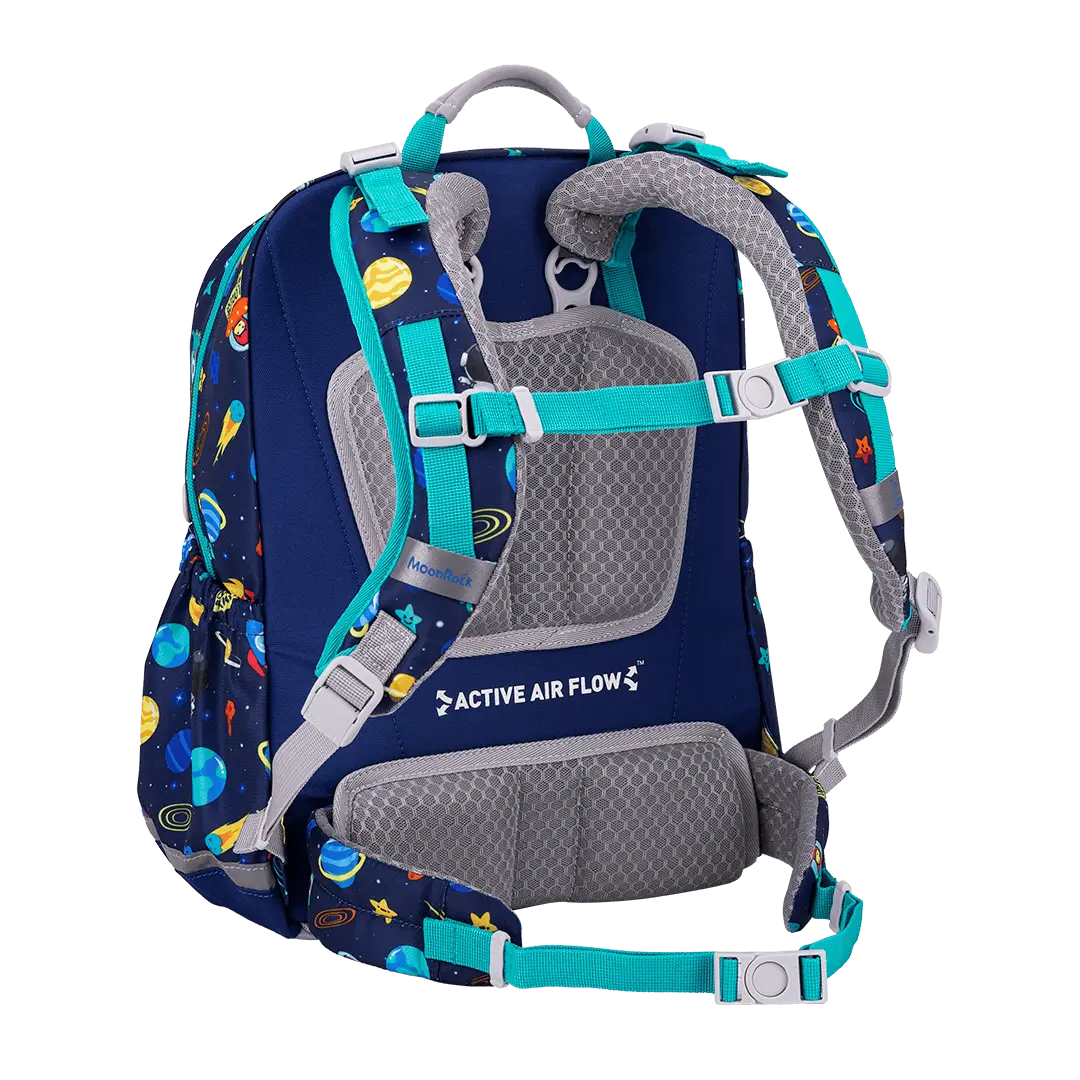 - The spinal-shaped aluminium alloy bar fitted inside the school bag gives support and durability to its back structure, creating the effect of maximal comfort.